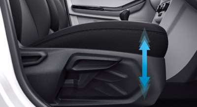 Experience improved comfort with a height-adjustable driver seat that supports extended driving hours.